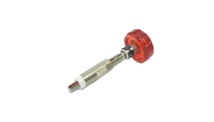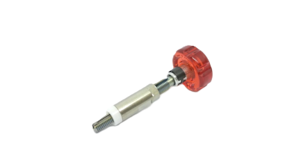 タングレスインサートを挿入する前に、深さの調整をおこなってください。挿入具のハウジングとロックナットをゆるめ、タングレスインサートをノッチにかかる(ガードとタングレスインサートの隙間に線径1本分の遊びをつくり、ハウジングとロックナットをセットして深さの調整をします。)まで装着します。